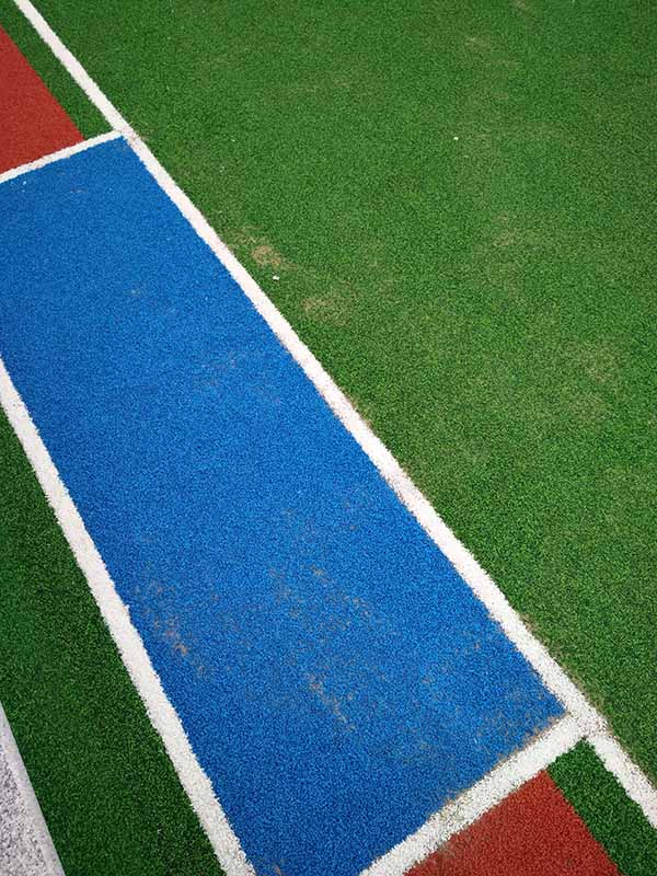 2片人造草坪门球场,采用双色宽叶PE人造草丝,草丝高度2cm,行距3/8,密度29600针。