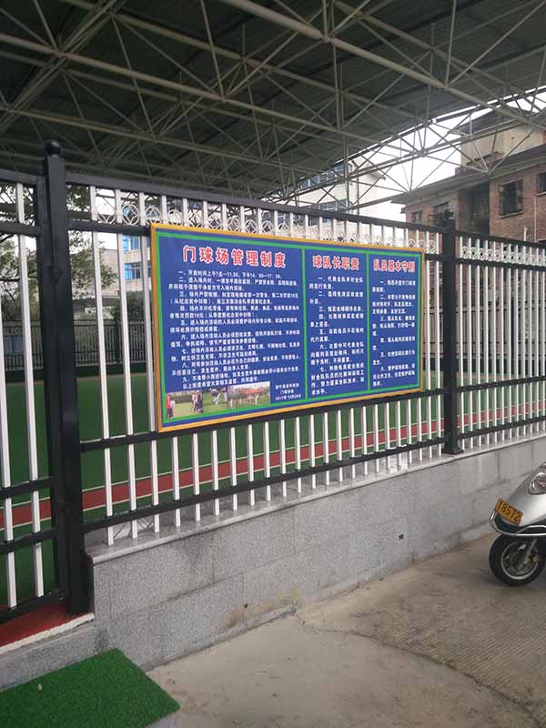 人造草坪门球场采用铁艺围栏,球场围网为人造草坪门球场保护,以及非比赛人员限制起到良好作用。