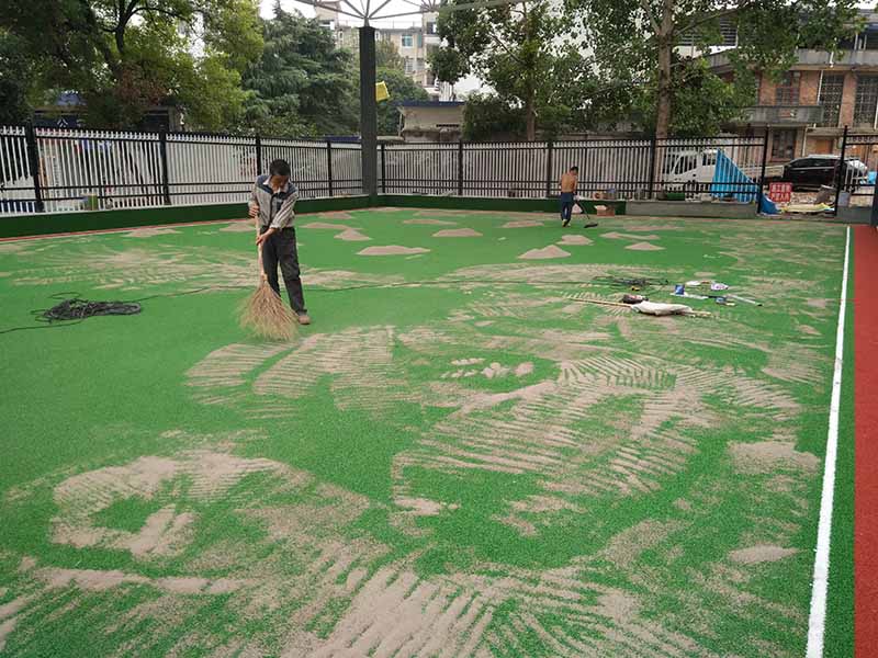 湖南邵阳市新宁县老干局老年大学标准人造草坪门球场地施工铺装