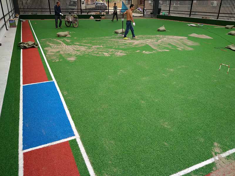 湖南邵阳市新宁县老干局老年大学标准人造草坪门球场地施工铺装。